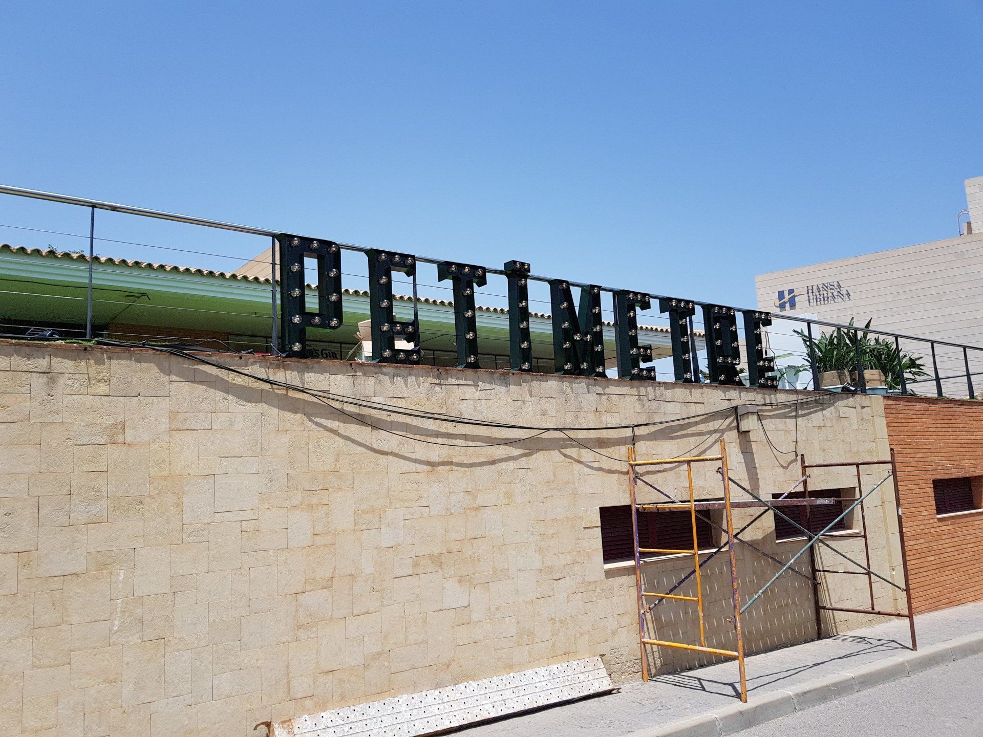 - Cartelería de letras corporeas en relieve para puente de acceso y entrada principal de 40 y 100cm respectivamente con interior de bombillas led todo lacado verde.