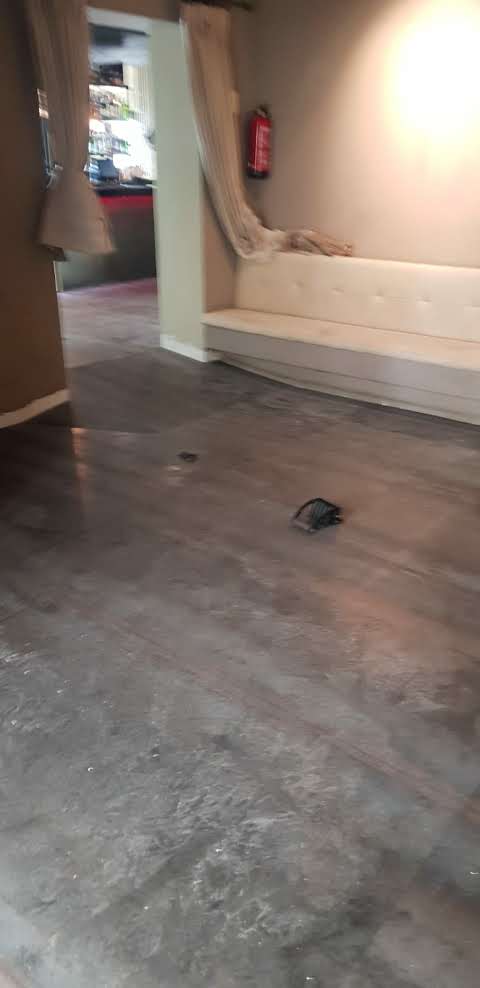 - Forrado de suelo con chapa negra sin tratar incluyendo rampas y varias estancias, incluyendo rodapié plegado del mismo material.