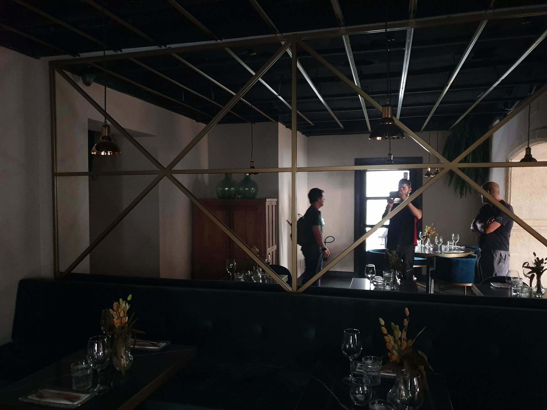 - Estructura primaria soporte luminaria techo con su correspondiente 500m en cuadrados concentricos perfileria termolacados por la cara exterior en negro y cara interior dorado para alojamiento de tiras leds, así como esquineras doradas para ocultación de conexiones para dar un acabado perfecto.